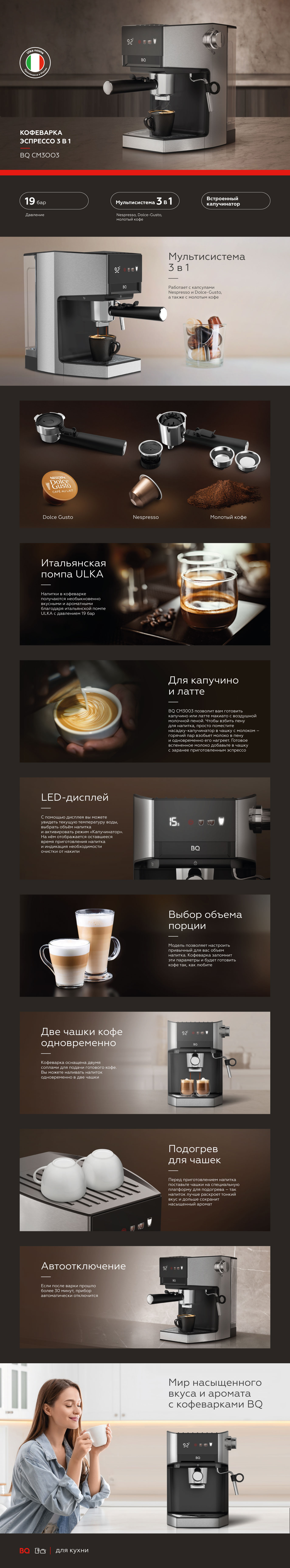 - Мультисистема 3 в 1: Nespresso, Dolce-Gusto, молотый кофе